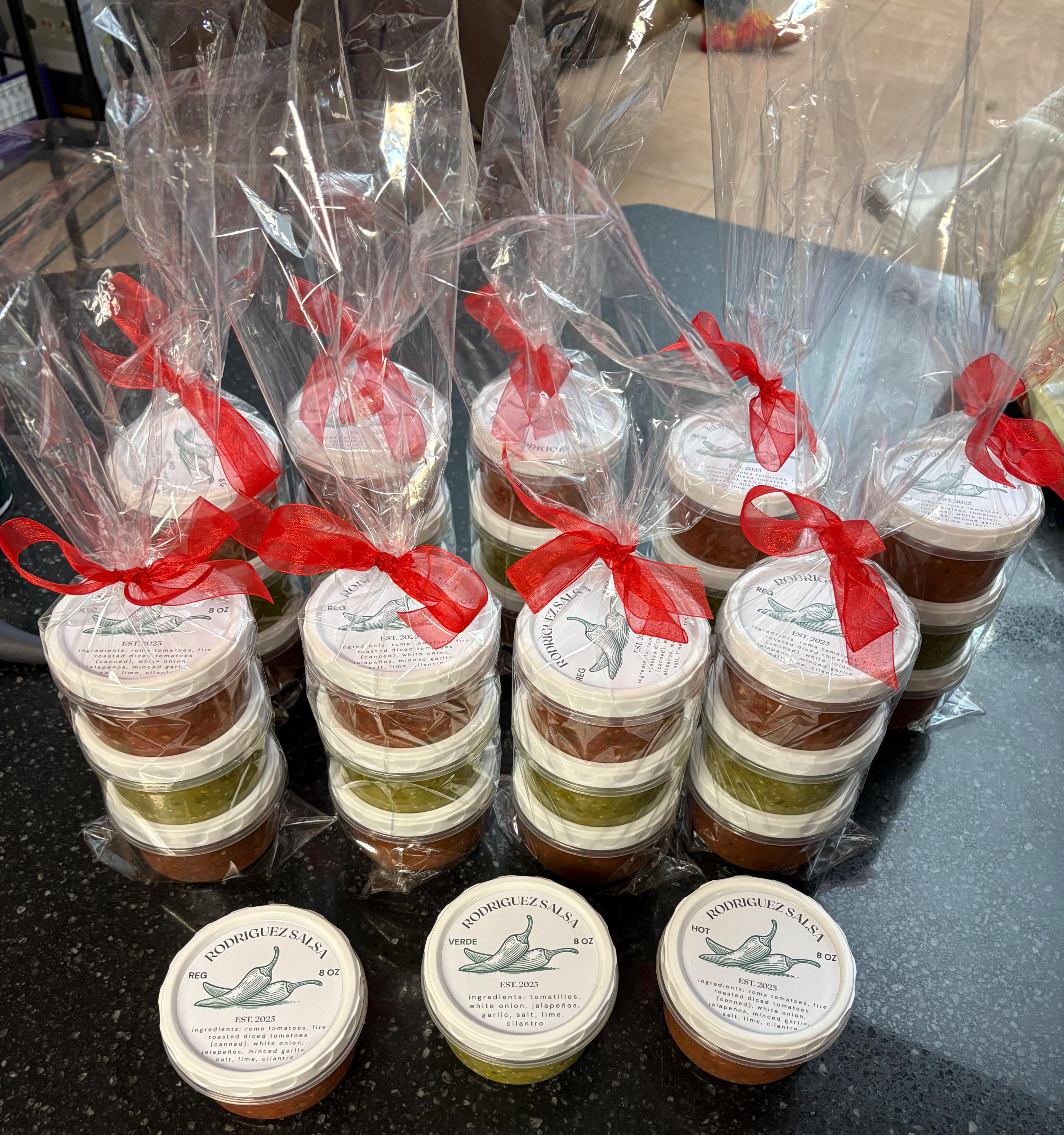 From humble teacher gifts to a mission-funding sensation, Rodriguez Salsa is more than just a condiment – it's a journey of flavor and purpose. We're the Rodriguez family, and our salsa story began in the most unexpected way: with jalapeños, tomatoes, and a blender, crafting unique gifts for our kids' teachers. That kitchen experiment blossomed into a perfected recipe and our top fundraiser for a mission trip to Uganda. Now, we're ready to share our passion with you. Be a part of the Rodriguez Salsa future!